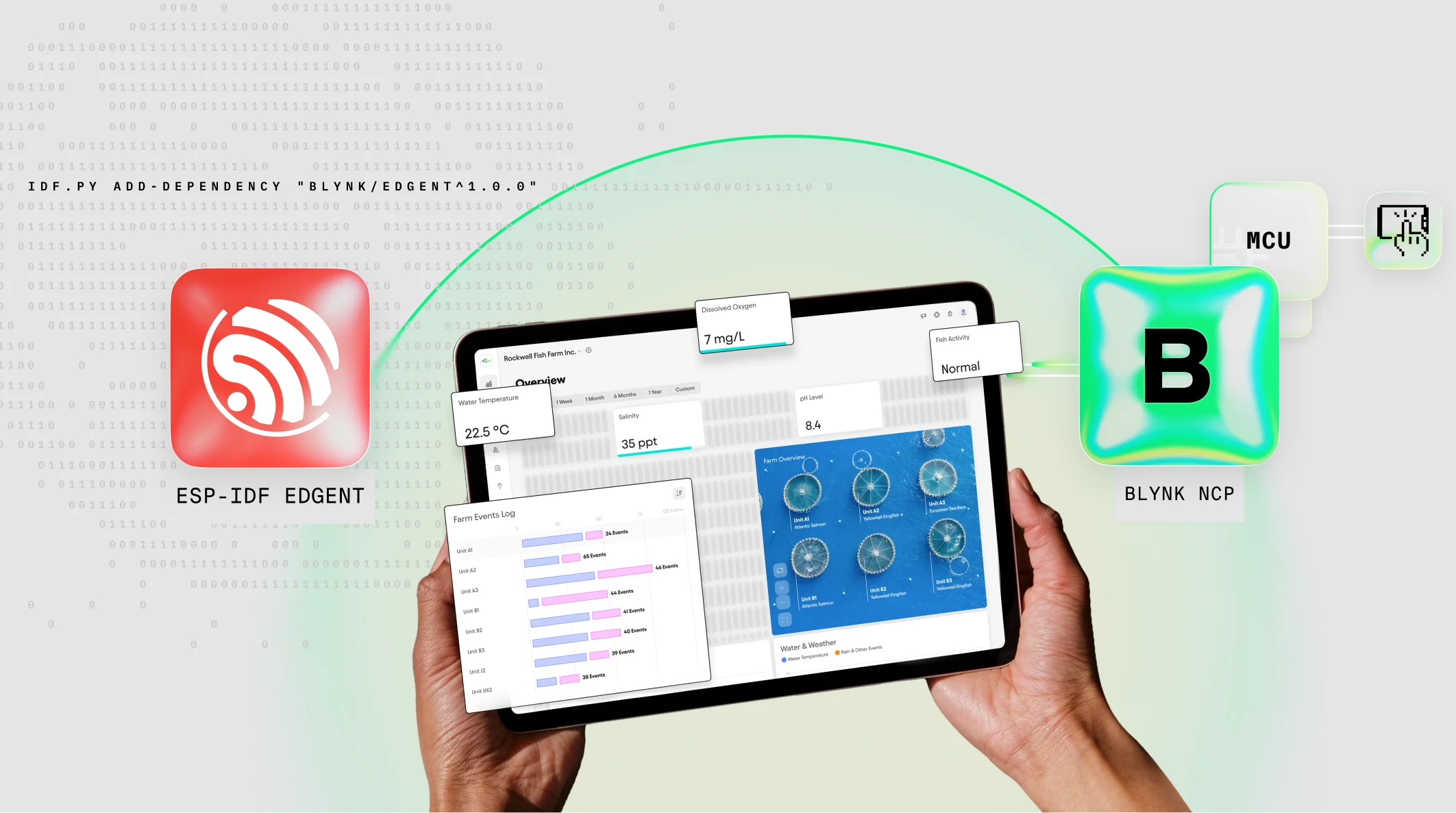 ESP-IDF Edgent (launched March 2026) is the production path for ESP32 firmware. It includes BLE-assisted provisioning, OTA firmware updates via Blynk.Air (FOTA for field-deployed devices, rollback not currently supported), network management with up to 16 saved WiFi networks, and secure MQTT. Available as a native component on the Espressif Component Registry.